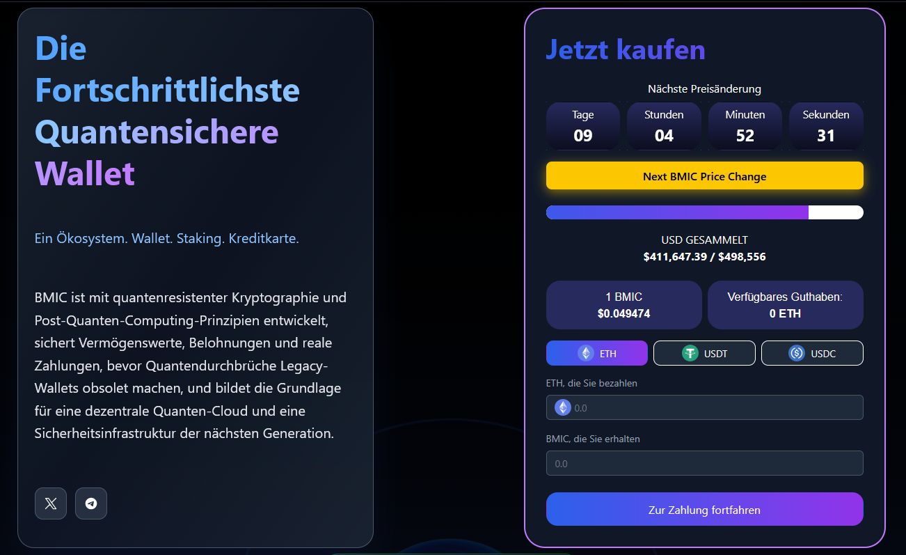 Bei BMIC handelt es sich um ein weiteres, neues Blockchain-Projekt, das sich darauf konzentriert, quantensichere Krypto-Infrastruktur und einen dezentralen Quantum-Meta-Cloud-Dienst zu schaffen. Dabei kombiniert BMIC Post-Quantum-Cryptography (PQC), Künstliche Intelligenz (KI) sowie Blockchain Governance. Damit sollen digitale Vermögenswerte und Anwendungen gegen die Bedrohung durch leistungsfähige Quantencomputer geschützt werden. Gleichzeitig soll ein Zugang zu einer dezentralen Rechenressource ermöglicht werden.