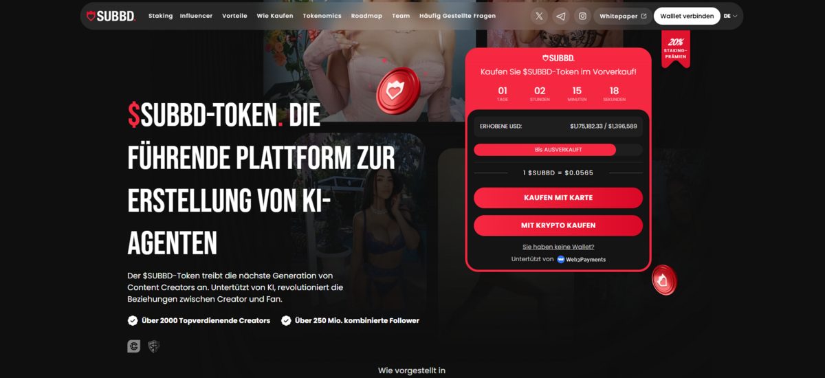 SUBBD gewann schnell an Fahrt, unter anderem durch Zusammenarbeit mit Influencern, die neue Wege in der Content-Erstellung unterstützen. Bis heute hat der Presale über $1.41M Millionen US-Dollar eingebracht.