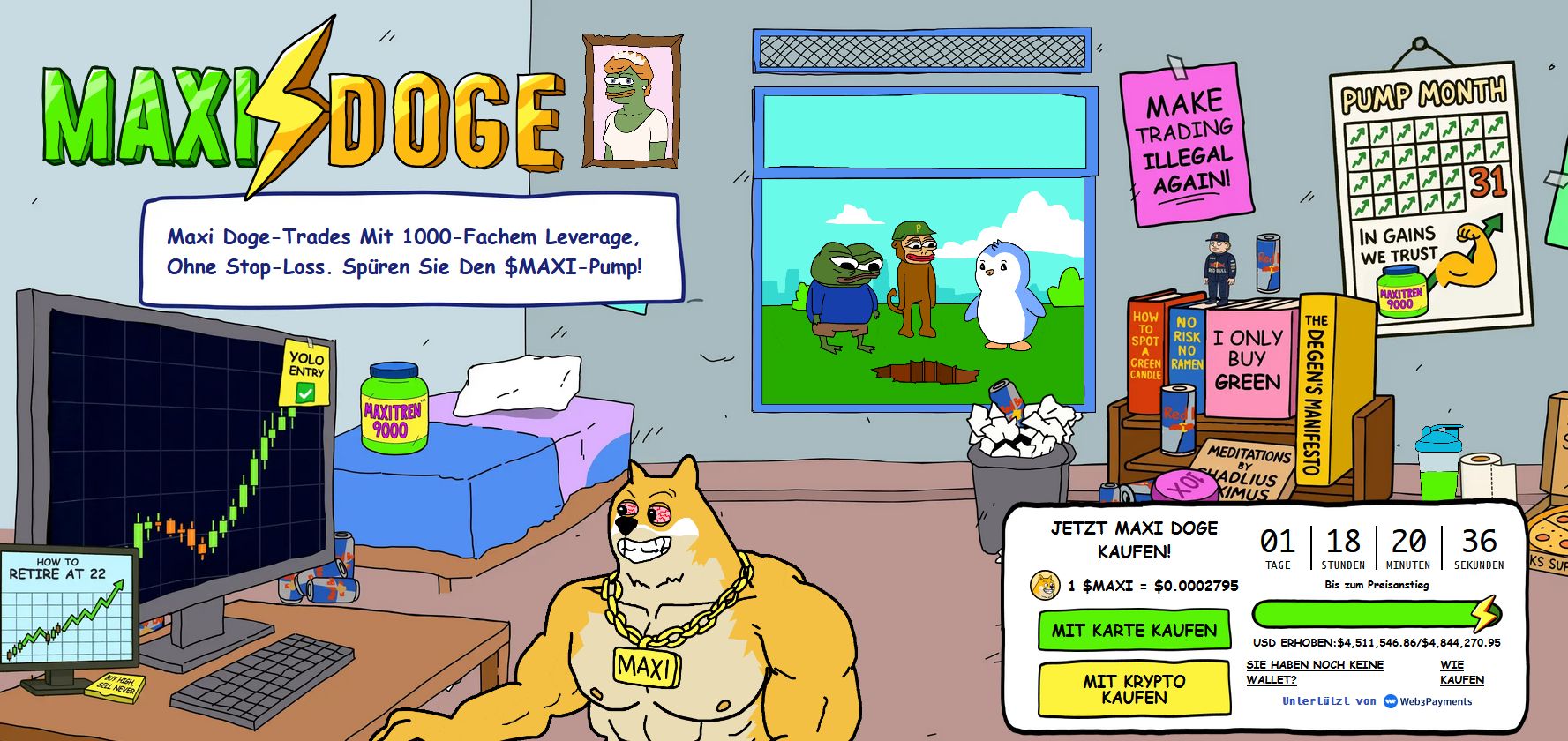 Inspiriert vom Erfolg von Dogecoin setzt $MAXI auf eine völlig neue, selbstironische Erzählung: der muskulöse „Gym-Shiba“, der den Meme-Markt erobert.