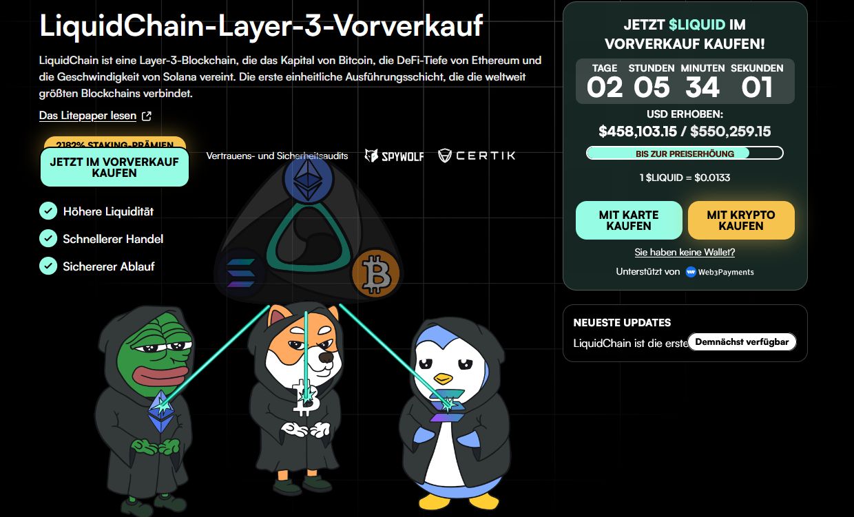 Eine neue Kryptowährung, die 2026 explodieren könnte, ist LiquidChain. Es handelt sich hierbei um ein aufstrebendes Krypto-Projekt, welches die Interoperabilität zwischen Bitcoin, Ethereum und Solana in den Mittelpunkt stellt. Dabei verfolgt die Plattform das Ziel, die Liquidität und Transaktionen über mehrere Netzwerke hinweg zu vereinfachen. Nutzer sollen dabei nicht auf zentrale Bridges angewiesen sein. LiquidChain positioniert sich damit als mögliche Layer-3-Lösung, welche das Beste aus den drei etablierten Blockchains vereint.