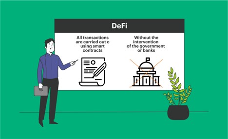 Decentralized Finance, kurz DeFi, bezieht sich auf einen Finanzraum, der nicht von einer einzelnen Einheit kontrolliert wird, ohne staatliche Einmischung oder zwischengeschaltete Banken, und in dem alle Transaktionen mithilfe von Smart Contracts in einem öffentlichen Ledger ausgeführt werden.