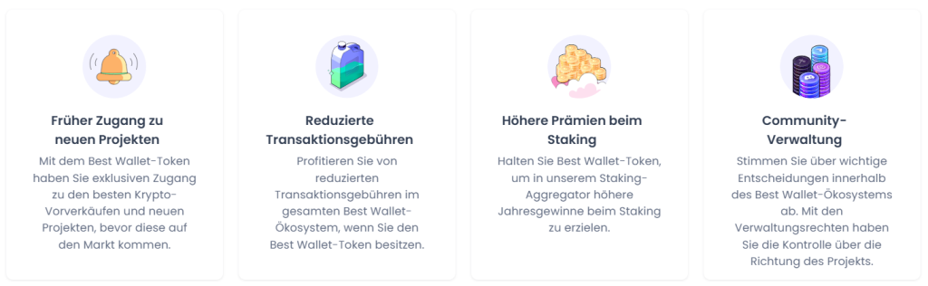 Inhaber von $BEST erhalten zudem reduzierte Transaktionsgebühren, höhere Staking-Renditen und Stimmrechte für Verbesserungsvorschläge im Best Wallet Universum.