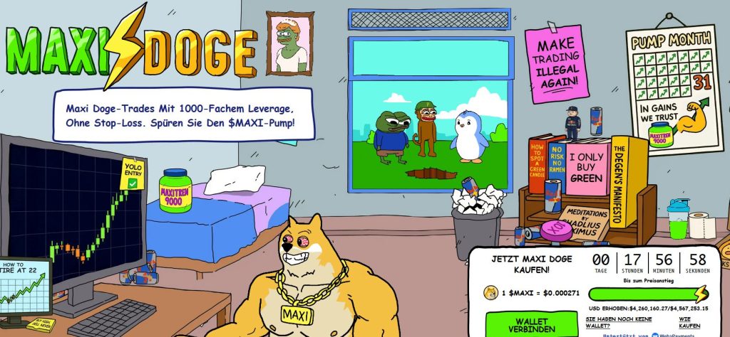 Bisher lief der Vorverkauf des $MAXI-Tokens äußerst erfolgreich: Über 4,26 Millionen US-Dollar wurden schon an Kapital gesammelt – und das trotz einer stark bärischen Marktphase im Oktober und November. Doch der Maxi Doge-Presale zeigte sich robust und so investierten Anleger stetig in das junge Meme-Coin-Projekt. Derzeit liegt der $MAXI-Listenpreis noch bei $0.000275000000000001, doch schon innerhalb weniger Tage wird die nächste Preisstufe automatisch erreicht.