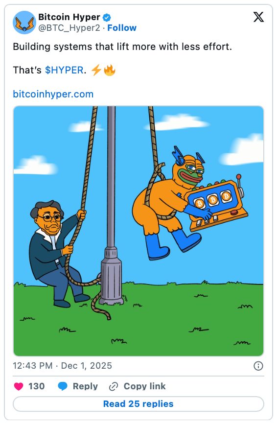 Vor diesem Hintergrund konzentrieren sich Anleger zunehmend auf Katalysatoren, die Bitcoin über Makrozyklen hinaus unterstützen können. Die Vorfreude auf die mögliche Einführung von Bitcoin Hyper im nächsten Jahr ist ein solcher Faktor, da einige darin einen Weg zu einer nachhaltigen, nutzungsorientierten Nachfrage nach Bitcoin sehen.