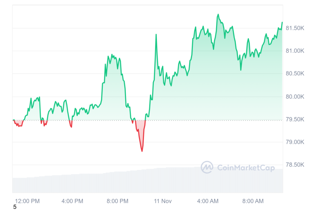 Langsam, aber sicher schaltet eine ganze Branche von bearish auf bullish: Nach Monaten der Konsolidierung und eher langweiliger Preisaktion lassen die Bitcoin-Bullen jetzt endlich wieder die Erde beben – und Anleger begrüßen das Momentum. +18,41 Prozent konnte die Kryptowährung Nummer 1 innerhalb der letzten 7 Tage zulegen, dabei mit Nachdruck über 80.000 Dollar steigen. Aktuell tradet BTC nur 0,56 Prozent unter seinem Allzeithoch von 81.858 Dollar, das vor fünf Stunden markiert wurde. Trader ahnen: Das war nicht das letzte neue Allzeithoch in dieser Woche.