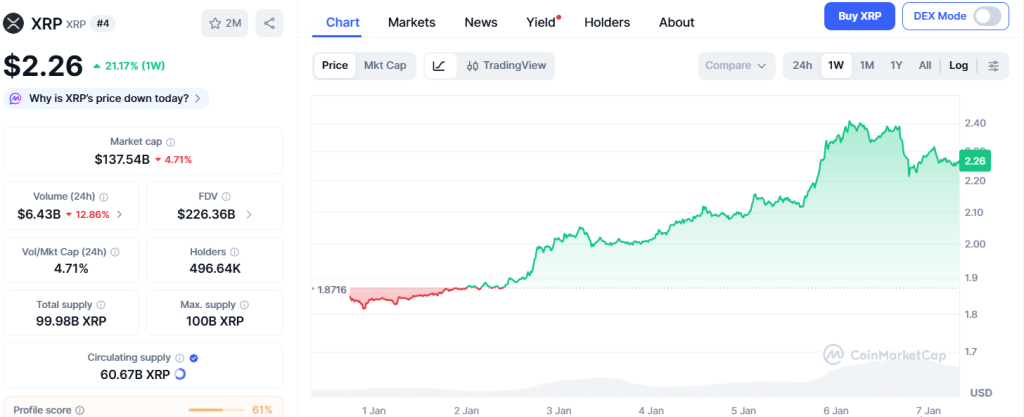 Bitcoin, XRP und ETH starten stark ins neue Jahr
