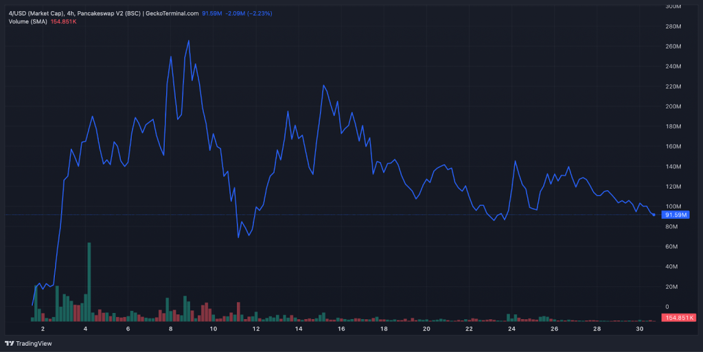 Die Statue, die von anonymen Spendern finanziert wurde, wird Berichten zufolge die charakteristische Vier-Finger-Pose von CZ zeigen, eine Anspielung auf seinen Neujahrsvorsatz für 2023, „FUD zu ignorieren“. Passenderweise explodierte eine andere Meme-Coin, die von diesem Moment inspiriert wurde, 4, Anfang dieses Monats nach einem Tweet von CZ auf eine Marktkapitalisierung von 300 Millionen Dollar.