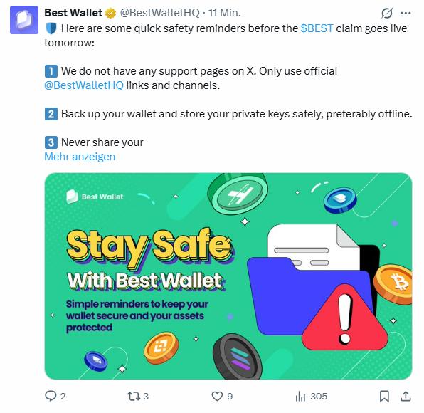 Bleiben Sie mit der Best Wallet Community auf Telegram und X in Verbindung, um die neuesten Updates zu erhalten.