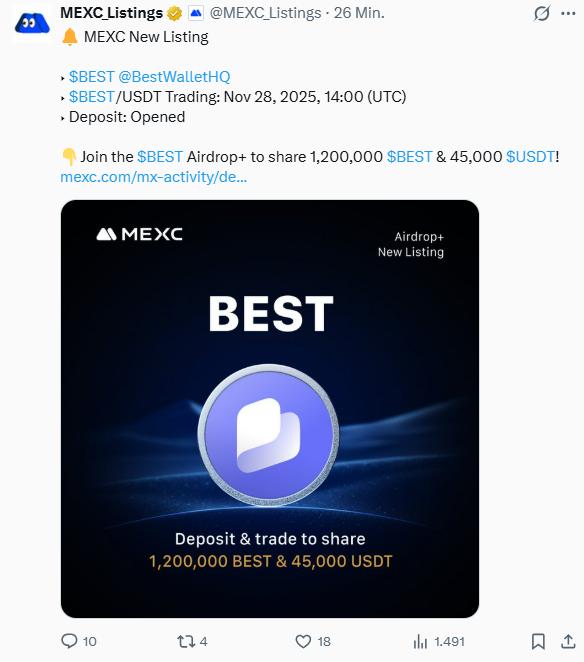 Der $BEST Token von Best Wallet bei MEXC! Handelsstart ist am 28. November