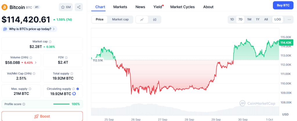 Doch damit ist es vorerst vorüber, Bitcoin legt wieder zu. Der Trend zum Uptober war schon in den vergangenen Tagen deutlich sichtbar. Immerhin fiel Bitcoin in den letzten Tagen des Septembers immer wieder unter 109.000 Dollar, ein Absturz schien möglich zu werden.