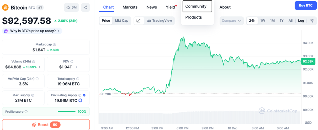 Aktuell steht Bitcoin bei $92.610. Das ist ein Tagesgewinn von 2,74%, im Wochenvergleich hat BTC 0,59% an Wert verloren. Die Nervosität ist angesichts der bevorstehenden Fed-Entscheidung also deutlich sichtbar. Von einem neuen Bullrun Crypto kann weiterhin keine Rede sein.