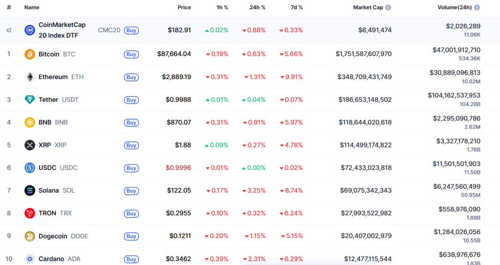 Entsprechend reagierten die Märkte sofort und schickten Bitcoin und Co. ins tiefe Tal der Tränen. Bitcoin stürzte neuerlich deutlich unter $90.000 und steht aktuell bei $87.696. Das ist ein Wochenverlust von rund 5,7%.