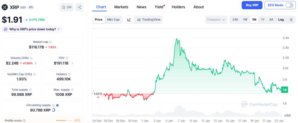 Das liegt an den fehlenden Katalysatoren, zeigt sich der Finanzanalyst Sean Williams überzeugt. Für eine Rallye würden XRP die nötigen Treiber fehlen. Er befürchtet daher, dass der Kurs von XRP im aktuellen Jahr auf $1 abstürzen wird.