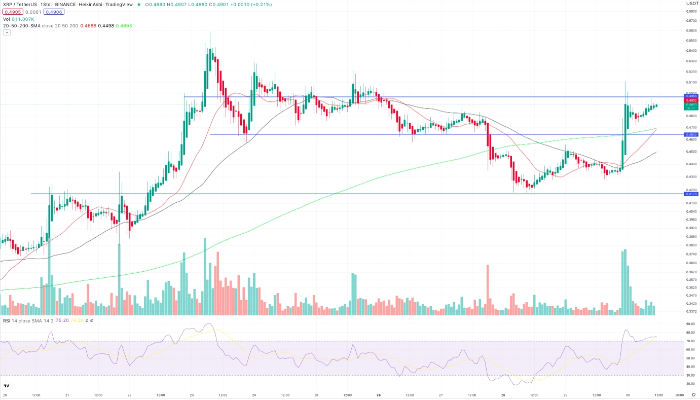 Je stärker XRP jedoch vorher steigt, desto wahrscheinlicher wird ein kurzfristiges Sell-the-News. Doch positive Nachrichten, die auf ein Ende des Rechtsstreits hindeuten, könnten bis dahin den XRP Kurs anfachen und erfolgreich gehandelt werden. Die 0,50 USD bleiben weiterhin das nächste, relevante Kursziel – eine Überwindung und eine Bestätigung des Ausbruchs per Tagesschlusskurs bieten die Chance auf schnelle weitere Kursgewinne. Einige Krypto-Trader erwarten bei fundamental positiven News sogar mittelfristig eine Verzehnfachung des XRP-Kurses.