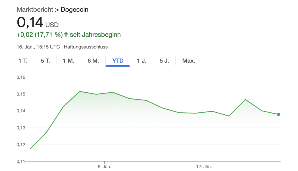 ($DOGE Kursentwicklung seit dem Jahreswechsel – Quelle: Google)