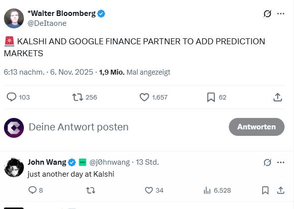 Google Finance nimmt jetzt Echtzeit-Prognosemarkt-Feeds von Kalshi und Polymarket auf