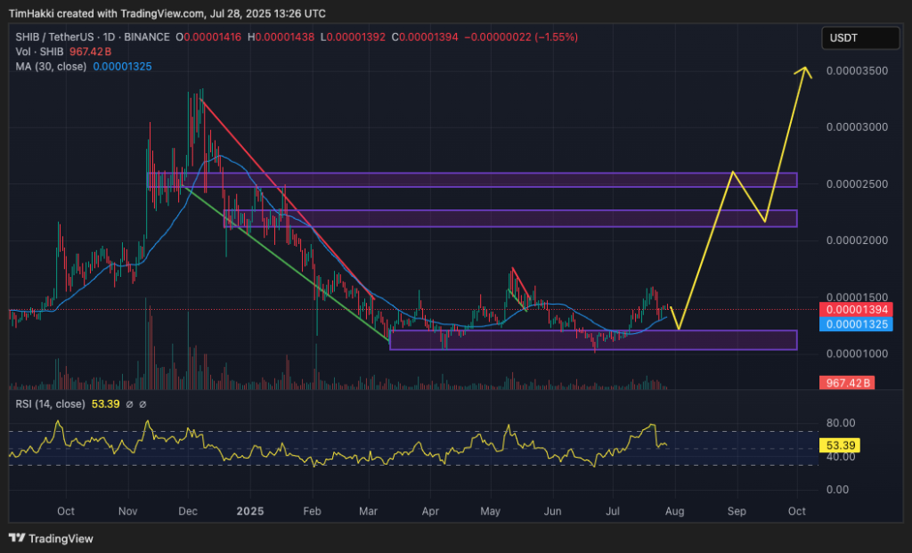 Der Hauptwiderstand befindet sich bei $0,000022, aber eine anhaltende Dynamik könnte SHIB bis Dezember in Richtung der optimistischeren Prognose von Gemini von $0,0001 bis $0,0005 treiben – eine Steigerung um das 7- bis 35-fache gegenüber dem aktuellen Niveau.