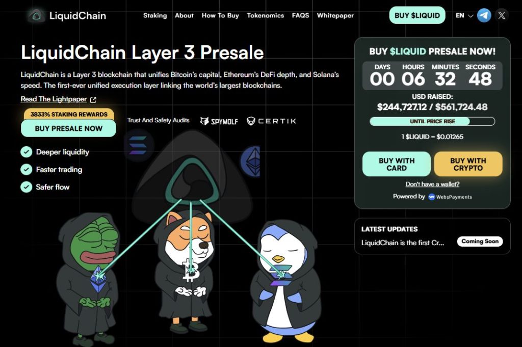 LiquidChain hat den Vorverkauf für den $LIQUID-Token eröffnet und damit den ersten Schritt in Richtung einer breiteren Einführung von Layer-3 eingeleitet, wie das Team erklärt. Die Idee hinter dem Projekt ist nicht, bestehende Blockchains zu ersetzen, sondern sich über sie zu stellen und ihnen bei der Zusammenarbeit zu helfen.