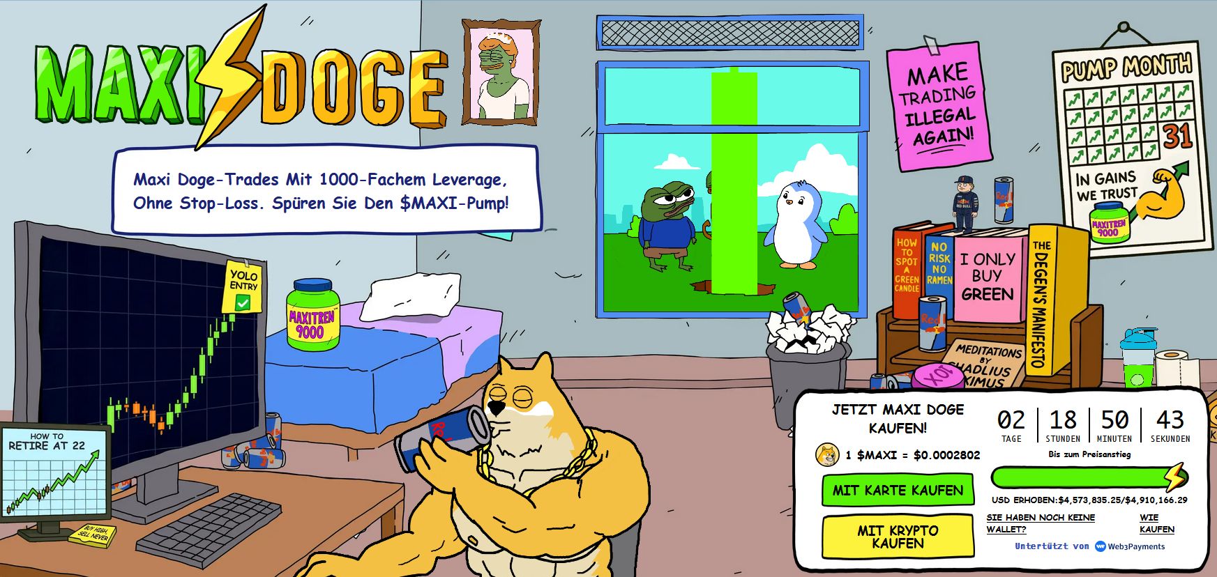 2. Maxi Doge ($MAXI) – Die nächste Evolutionsstufe der Meme-Coins