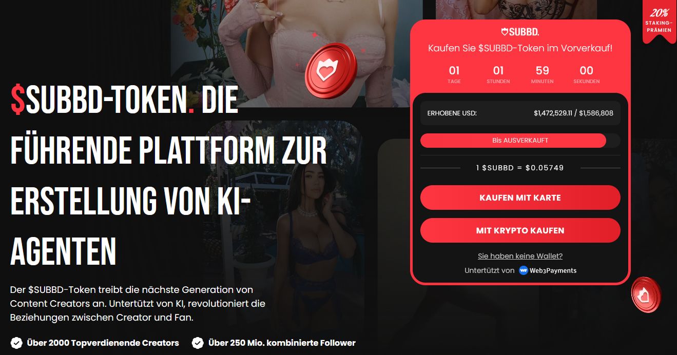 Noch wird für diese Zielgruppe viel zu wenig getan, besonders im Krypto-Raum. Das will aber SUBBD jetzt ändern, und dass die Idee ein Erfolg werden könnte, zeigt sich auch beim großen Zuspruch im Krypto Presale.