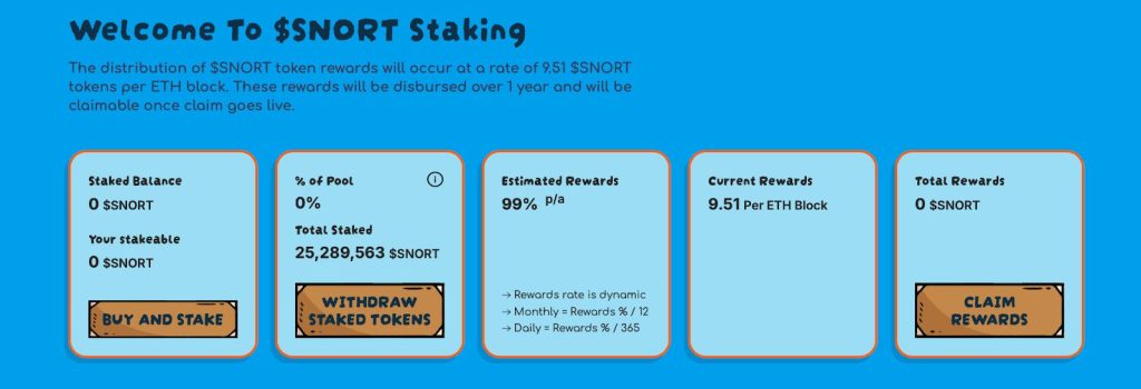 Darüber hinaus dient SNORT auch als Staking-Währung des Projekts. Wie bereits erwähnt, sind bereits über 25 Millionen Token gesperrt, was das zirkulierende Angebot weiter reduziert, insbesondere nach den jüngsten Token Burns.