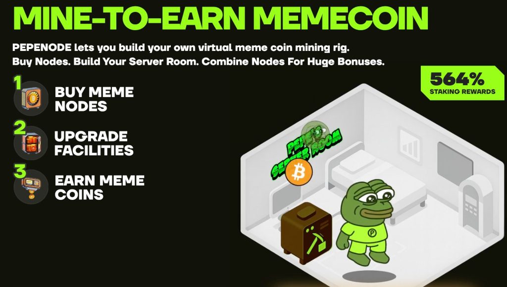 PepeNode kombiniert die virale Anziehungskraft der Marke Pepe mit der Markttauglichkeit eines virtuellen Mining-Produkts, das Einkommensströme freisetzt.