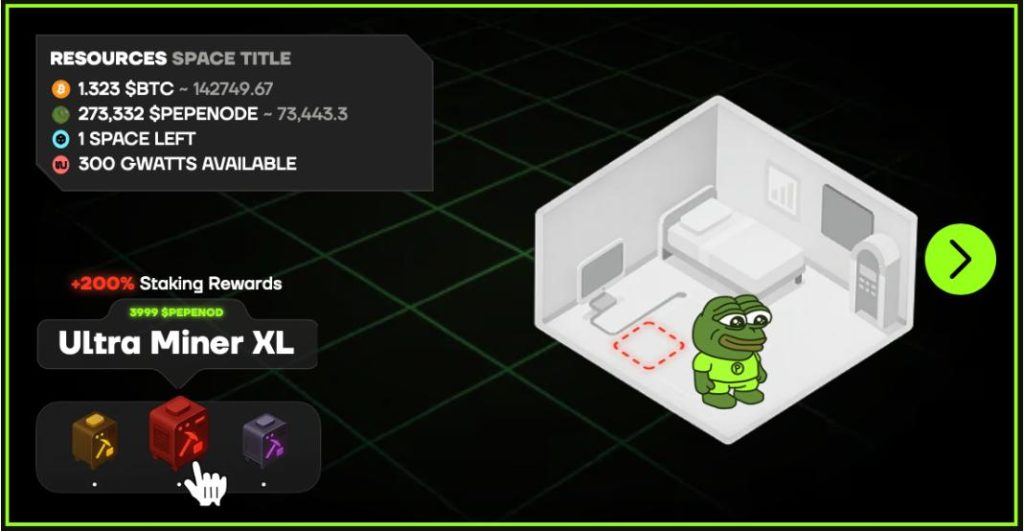 Aber was PepeNode so besonders macht, ist, dass es sich nicht wie ein Job anfühlt. Stattdessen ist es wie eine Mischung aus FarmVille und Tycoon Builder konzipiert, bei dem Sie in ein strategieorientiertes Spiel eintauchen. Sie beginnen mit einem kleinen digitalen Mining-Raum und bauen ihn zu einem ausgewachsenen Krypto-Imperium aus, während Sie gleichzeitig echte Belohnungen verdienen.