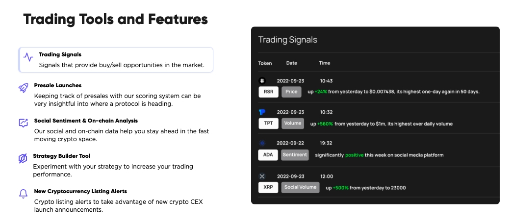 Technische Indikatoren, Presale-Scoring, ICO-Bewertungen, Social-Trading, Algorithmen, Handelssignale oder Sentiment-Scores sind nur einige Facetten von Dash 2 Trade. Basierend auf Blockchain und KI wird hier ein ganzheitliches Konzept mit leistungsstarkem Dashboard entstehen.
