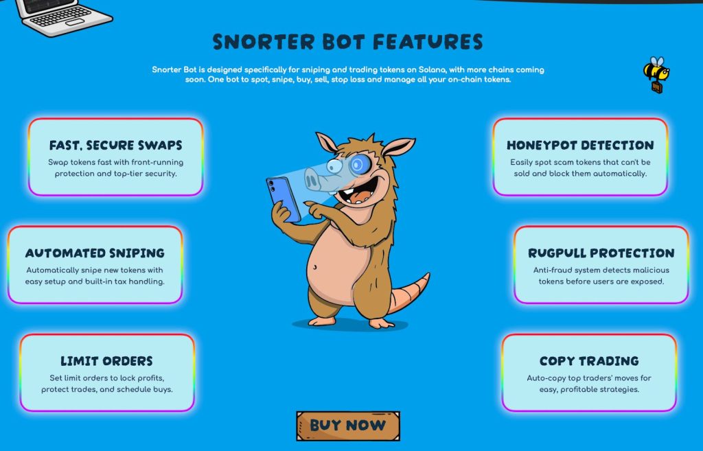Ein Projekt, das auf diesen Bedarf eingeht, ist Snorter Bot Token – der kommende Trading-Bot, der Tausende von Meme Coin-Neueinführungen durchforstet, diejenigen markiert, die am wahrscheinlichsten hohe Kapitalzuflüsse anziehen werden, und den Nutzern hilft, früh einzusteigen und auf dem Höhepunkt auszusteigen, genau wie die Wale es tun.