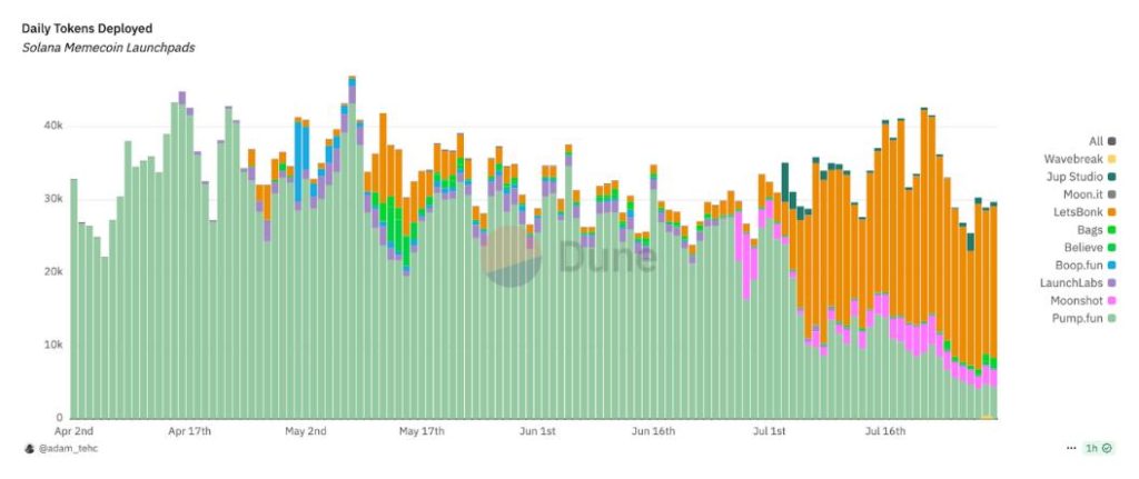 Allerdings gab es auch einige Hindernisse auf dem Weg dorthin. So verlor Pump.fun Mitte 2025 innerhalb von zwei Monaten erhebliche Marktanteile an LetsBonk, das innerhalb weniger Wochen 55 % des Marktes eroberte.