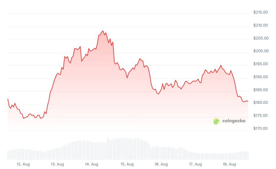 Während die Community den Rekord diskutierte, ging es für den SOL-Kurs bergab. Am Montagmittag notierte Solana bei 181,21 US-Dollar – ein Minus von 5,6 Prozent auf 24-Stunden-Sicht. Damit reiht sich der Coin in die breite Marktschwäche ein, die zuletzt fast alle großen Kryptowährungen erfasste.