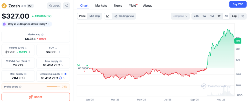 Zcash zählte 2025 zu den großen Stars der Kryptoszene. Der Kurs des Tokens kletterte binnen weniger Monate auf den 24-fachen Wert und bis zu einem Hoch von fast $733. Doch dieser Bullrun Crypto fand jetzt ein jähes Ende.