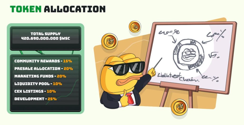 Der Vorverkauf von Kryptowährungen sorgt für große Aufmerksamkeit in der frühen Phase des Projekts. Der aktuelle Vorverkaufspreis von $WSC liegt bei $0,00028846. In dieser Phase kann das Ökosystem expandieren, da sich weitere Titel darauf vorbereiten, dem Netzwerk beizutreten. Der Vorverkauf trägt auch dazu bei, vor dem eigentlichen Start Stabilität zu schaffen.