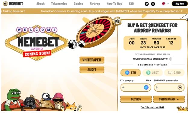 Web3’s erstes Meme Coin Casino Memebet Token sammelt $250.000 in der Startwoche