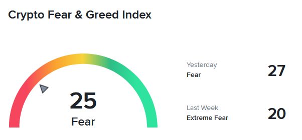 Derzeigt gibt die Krypto-Börse Binance den aktuellen Wert mit 25 Punkten an und auch bei CoinMarketCap erhalten wir den selben Wert mit 25 Punkten. Dadurch lässt sich festhalten, dass sich die aktuelle Stimmung am Markt in einem ängstlichen Umfeld befindet. Als einer von vielen technischen Indikatoren ist auch der Fear & Greed Index kein Garant für die Richtigkeit von Stimmungen oder zukünftigen Marktentwicklungen.