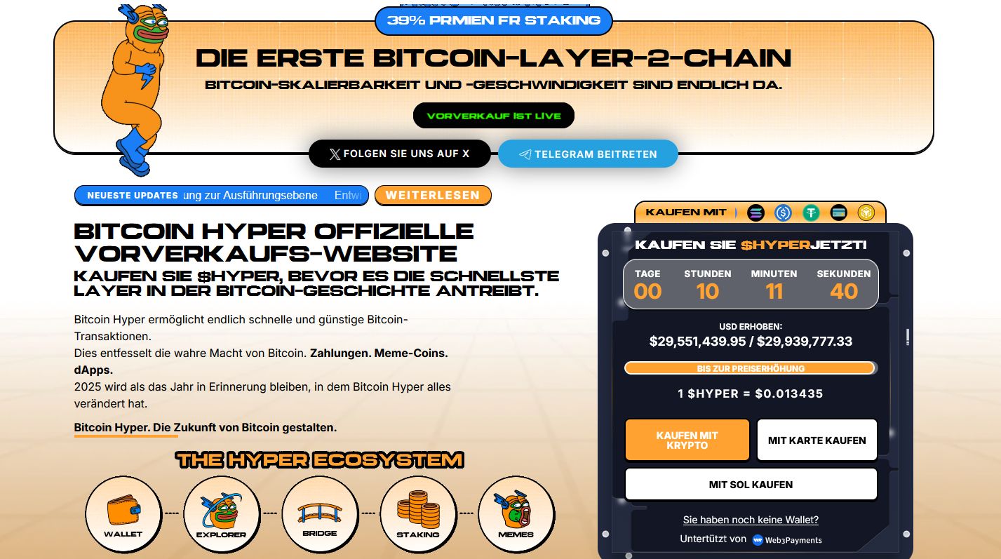 Das Interesse ist entsprechend hoch. Im laufenden Presale wurden bereits über 29,55 Millionen US-Dollar eingesammelt. Mit einem Tokenpreis von 0,013435 US-Dollar und einem Staking-Anreiz von bis zu 39 Prozent Rendite zielt das Projekt klar auf Early Adopters und risikobereite Investoren.