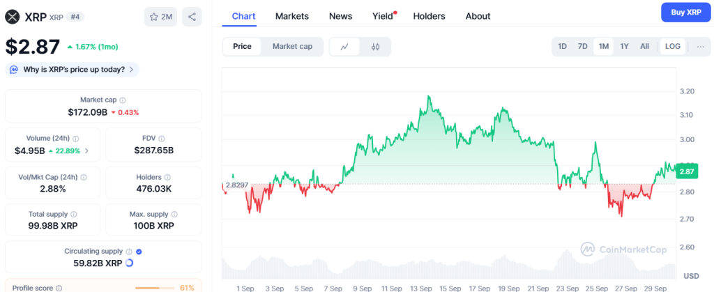 Vor wenigen Tagen drohte XRP sogar die Marke von $2,70 zu unterschreiten, begann sich danach jedoch wieder zu erholen. Mittlerweile ist XRP kurz davor, die $2,90 zu überschreiten, doch der Widerstand erweist sich weiterhin als hartnäckig.