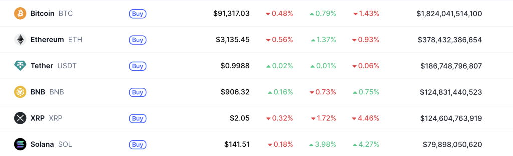 (Top Coins nach Marktkapitalisierung – Quelle: Coinmarketcap)