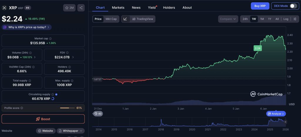 (XRP Kursentwicklung in den letzten 7 Tagen – Quelle: Coinmarketcap)