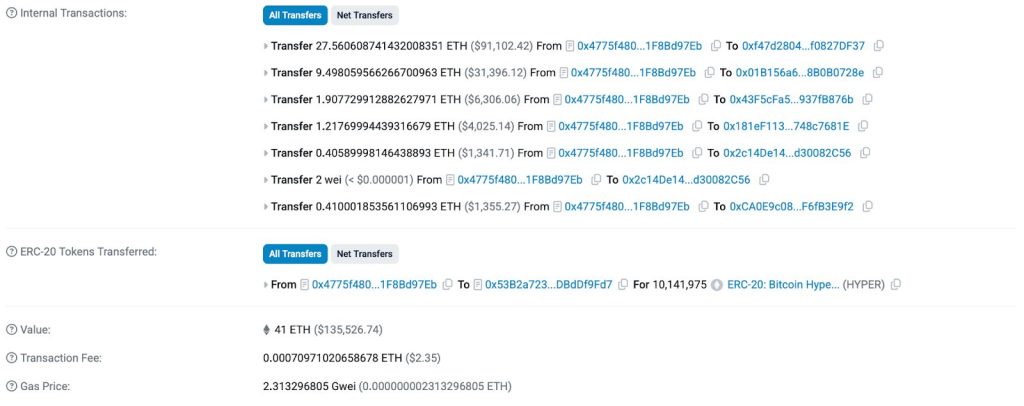 Anfang dieser Woche betrat ein neuer Wal den Markt mit einem Kauf von $135.000 für 10 Millionen HYPER-Token und fügte damit der wachsenden Liste von hochkarätigen Käufen in der Vorverkaufsphase hinzu.