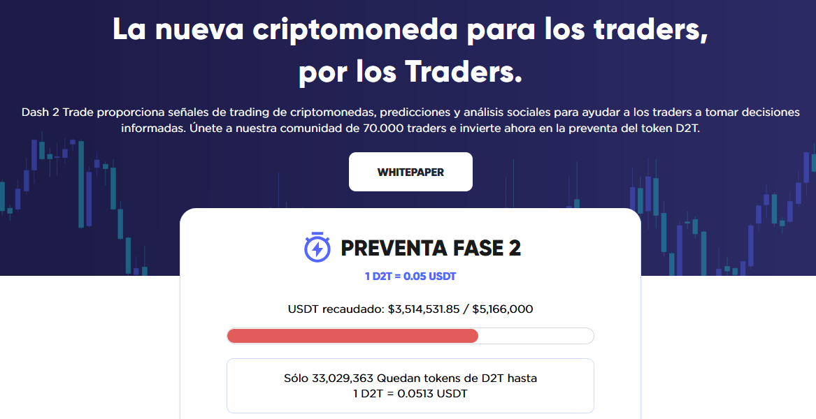 Dash 2 Trade no para de crecer, y una muestra de ello es el éxito que está teniendo la preventa de D2T. La plataforma lanzó su primera fase de preventa hace menos de un mes, y ya ha conseguido recaudar más de 3,5 millones de dólares.