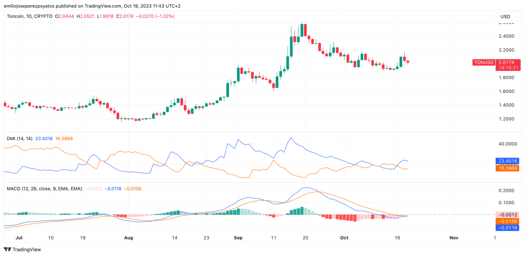 En la actualidad Toncoin se sitúa en rango de precio de por encima de la barrera de los 2 dólares, un nivel éste que anteriormente ha protagonizado momentos de tensión actuando como resistencia difícil de perforar.