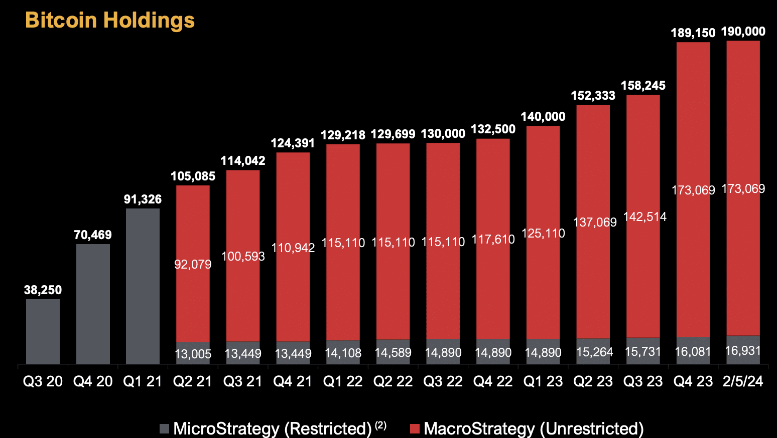 A día de hoy se trata de la entidad jurídica/compañía con mayor cantidad de Bitcoin en su balance: 190.000 BTC, con un precio medio ponderado de 31.224 $.