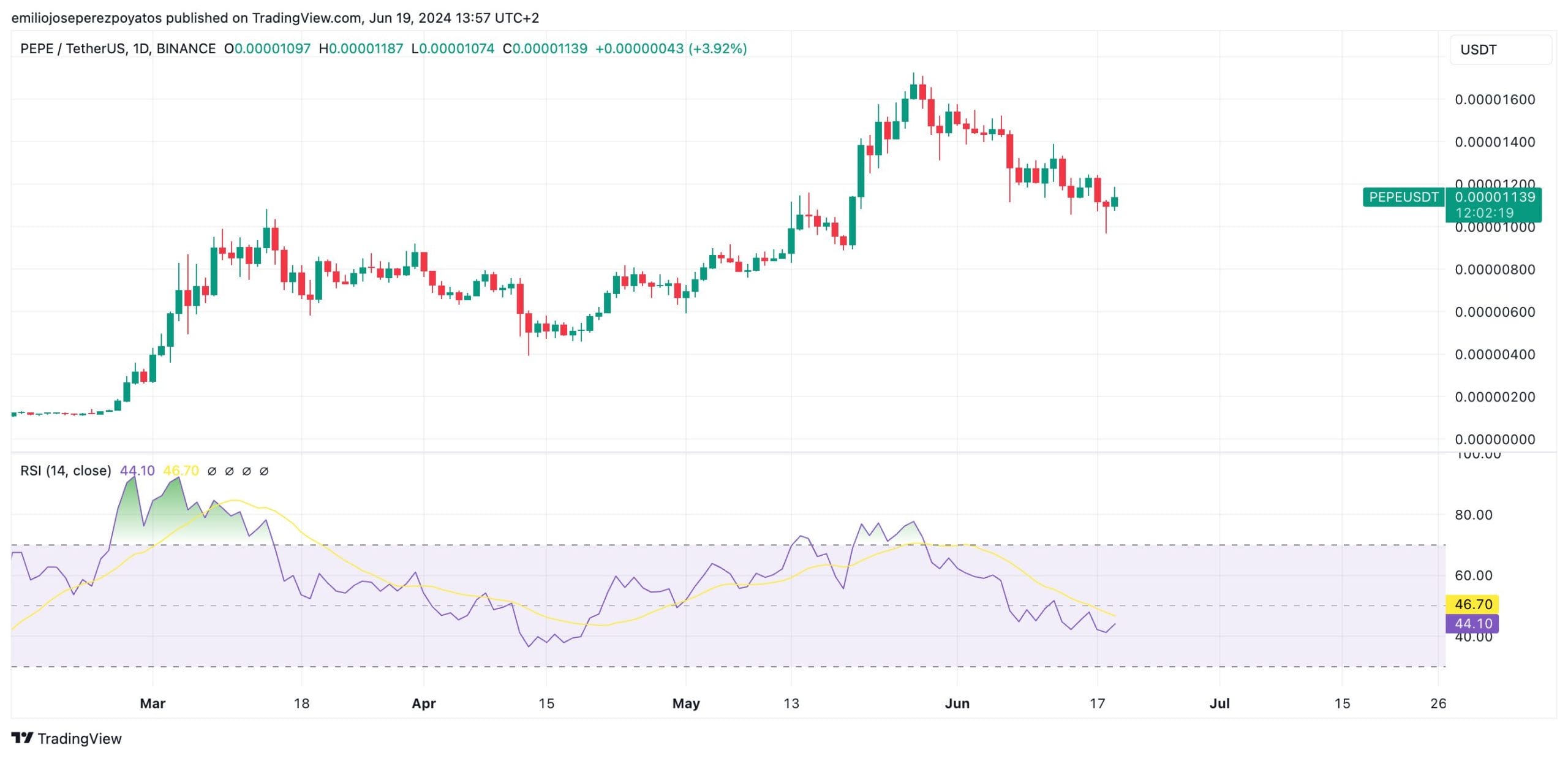 Detalle de cotización de PEPE con RSI / Fuente: TradingView