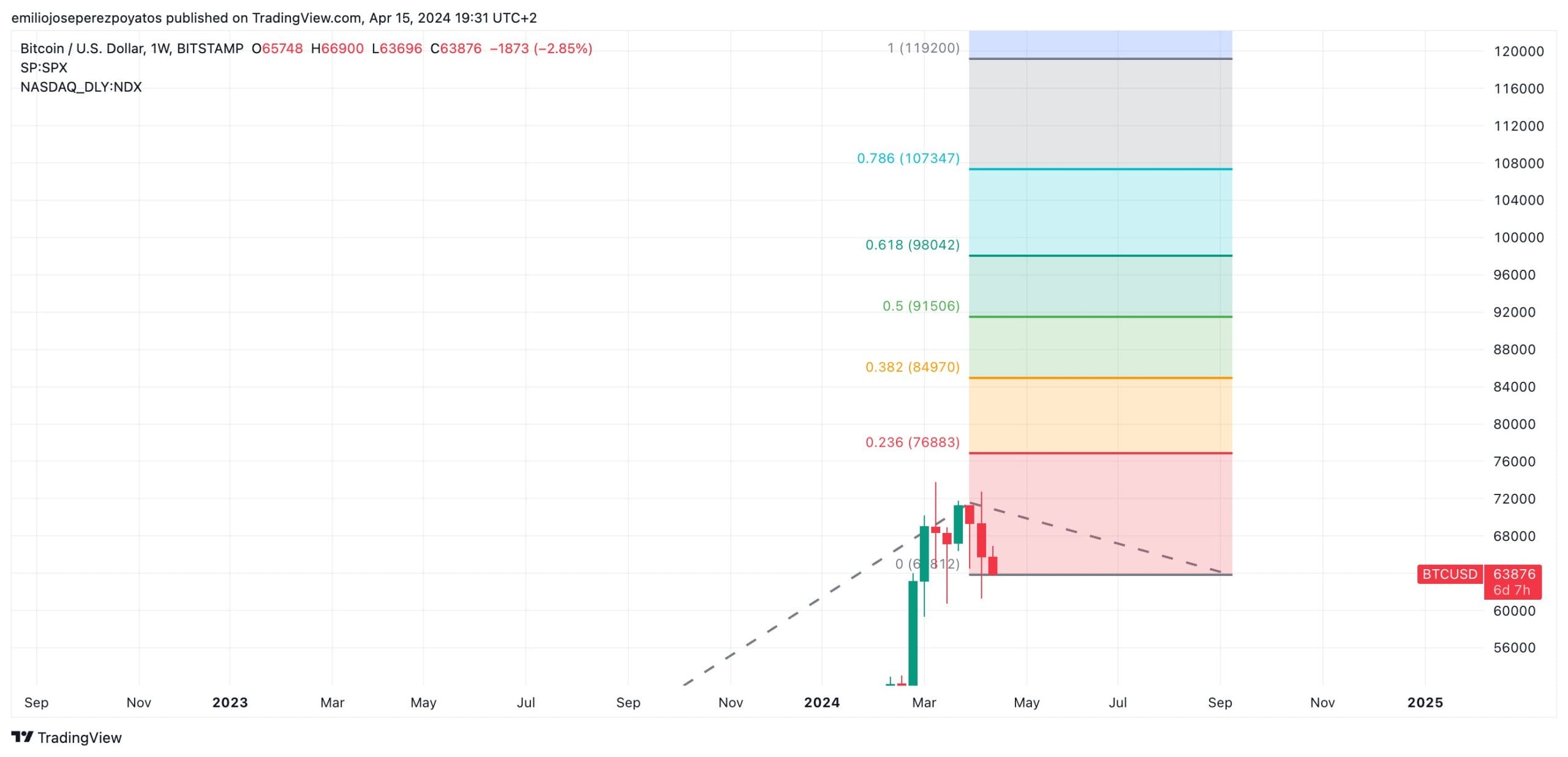 Si tomamos la base actual, con la extensión de Fibonacci como palanca de cálculo, para el corto plazo estaríamos hablando de una primera resistencia importante en los 84.970 $. Una perspectiva más positiva, con un mercado que acompañe, por ejemplo gracias a la bajada de tipos de interés, elevaría la proyección al 107.347 $.