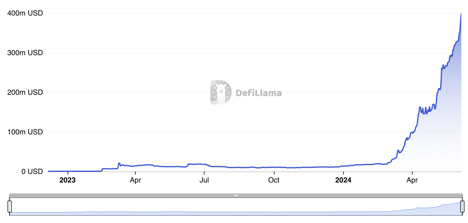 Otro aspecto que también estaría influyendo en este desempeño es el dato de TVL. Según aparece en las gráficas de DefiLlama, en la actualidad nos situamos en zona de máximos, con 399 millones de dólares bloqueados. Este dato siempre se considera positivo en tanto que hace que la criptomoneda sea mucho más robusta, además de lanzar un mensaje alcista al transmitir que los inversores prefieren guardarse los tokens a venderlos en el mercado: