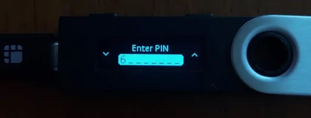 La seguridad de Ledger wallet es uno de los puntos más altos en su valoración. Y es que su diseño es robusto, almacena la frase semilla fuera de línea y se protege contra manipulaciones físicas. Además, tiene una capa de protección adicional, ya que tiene un PIN para acceder a las funciones o confirmar transacciones. Cada vez que activas la wallet, debes presionar los botones y desbloquear la wallet con una combinación de entre cuatro y ocho dígitos.