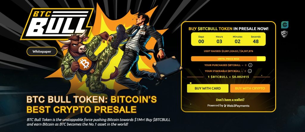 Uusi kryptovaluutta BTC Bull ($BTCBULL) on kerännyt huomiota yhteisölähtöisenä tokenina, joka palkitsee haltijoitaan aidolla Bitcoinilla aina, kun BTC saavuttaa tietyt hintatasot. Toisin kuin perinteiset meemikolikot, BTCBULL on suunnattu pitkäaikaisille sijoittajille, tarjoten todellisia kannustimia BTC-airdropien ja steikkausmahdollisuuksien kautta.