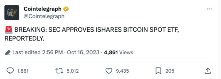 Sosiaalisen median huhuihin perustuvat Bitcoin-markkinoiden suuret hintaliikkeet korostavat, kuinka herkkä kryptovaluutta on tällä hetkellä spot-ETF-sovellusten teeman keskellä.
