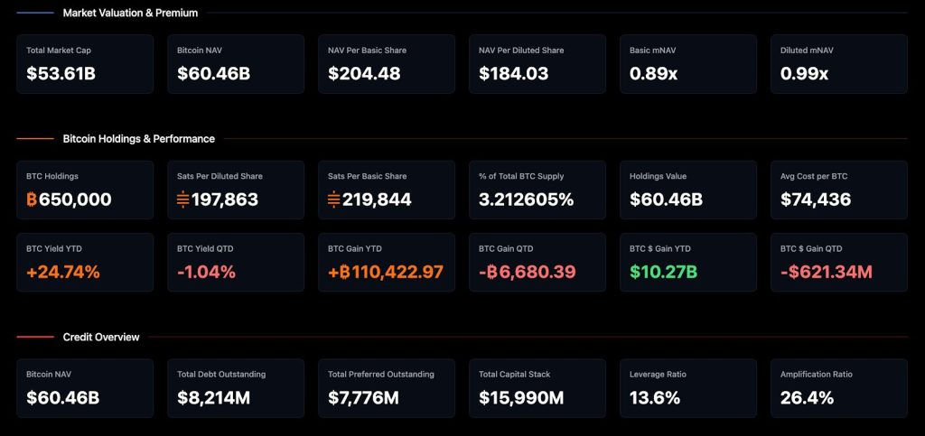 Sijoittajien rauhoittamiseksi yhtiö on äskettäin avannut “BTC Credit” -dashboardin, jossa todetaan, että osinkojen kattavuus riittää, vaikka Bitcoinin hinta pysyisi pitkään muuttumattomana.